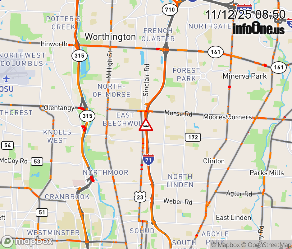 The left shoulder is blocked on I-71 South beyond Sinclair Rd/Morse Rd, due to a crash. ![]() |