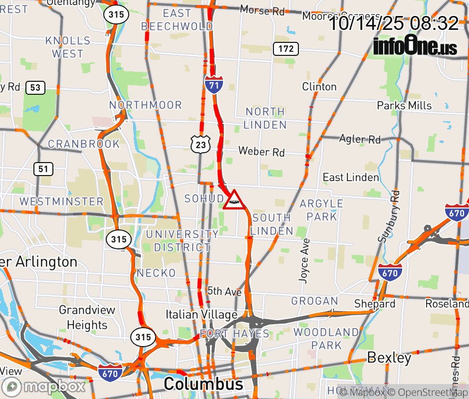 The right shoulder is blocked on I-71 South beyond Hudson St, due to a crash. ![]() |