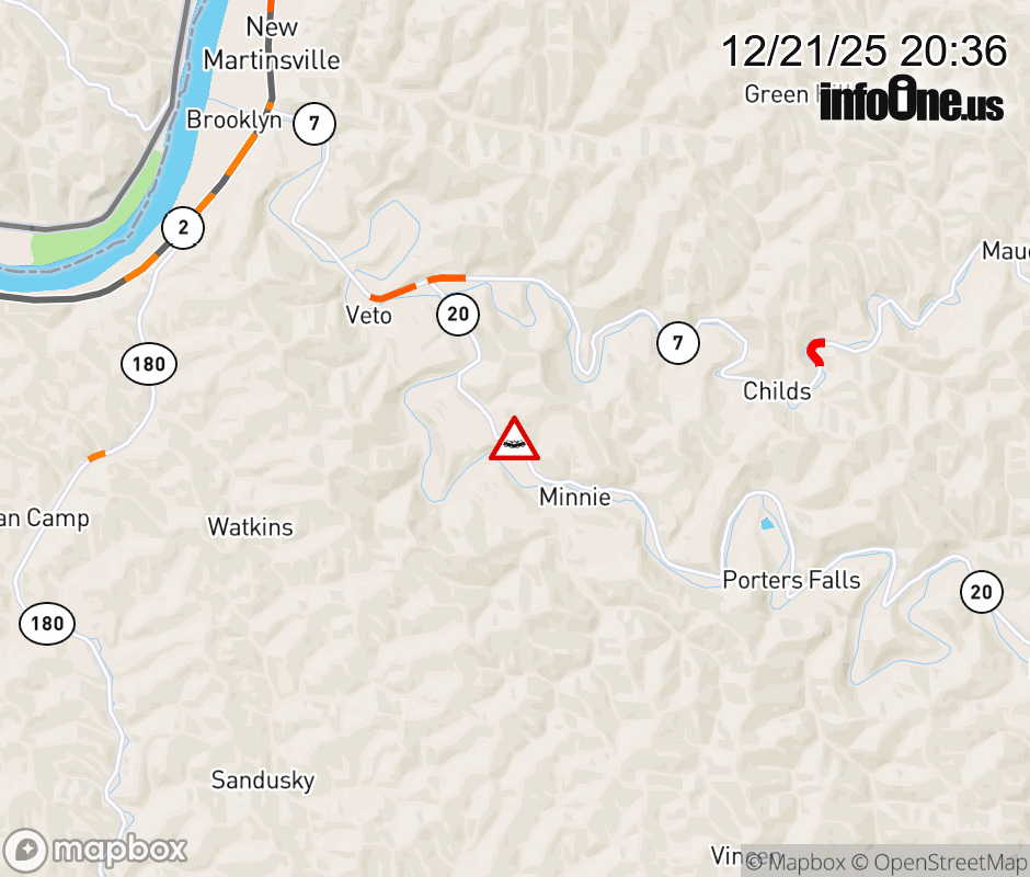 Vehicle Crash on WV-20 at Mile Marker 27.9. Updated: Sun 12/21/25 8:36 PM EST ![]() Updated: Sun 12/21/25 8:36 PM EST |