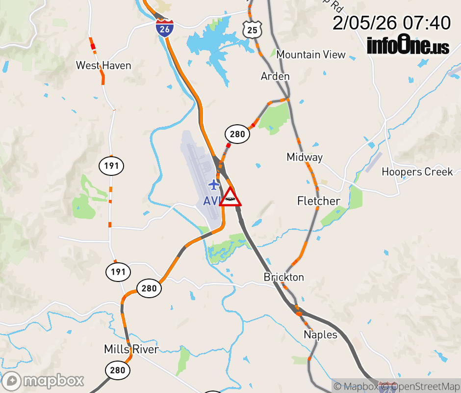 The lane is closed near NC 280, Airport Road. Updated: Thu 2/5/26 7:40 AM EST ![]() Updated: Thu 2/5/26 7:40 AM EST |