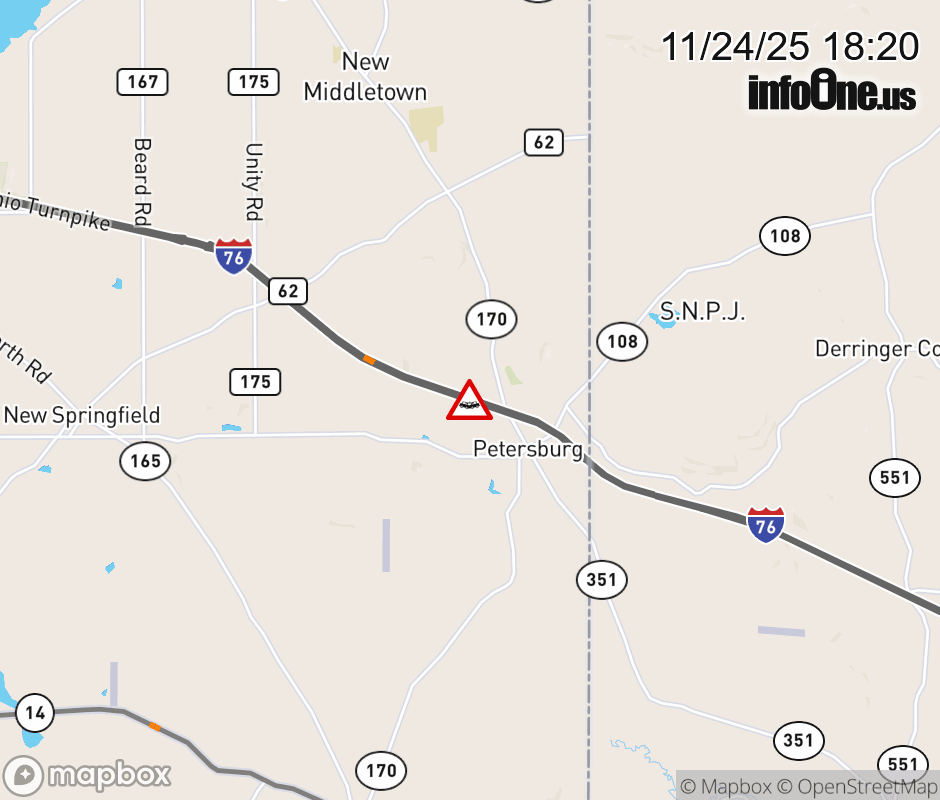 Expect lane closures on I-76 East (Ohio Turnpike) beyond SR-7, due to a crash. ![]() |
