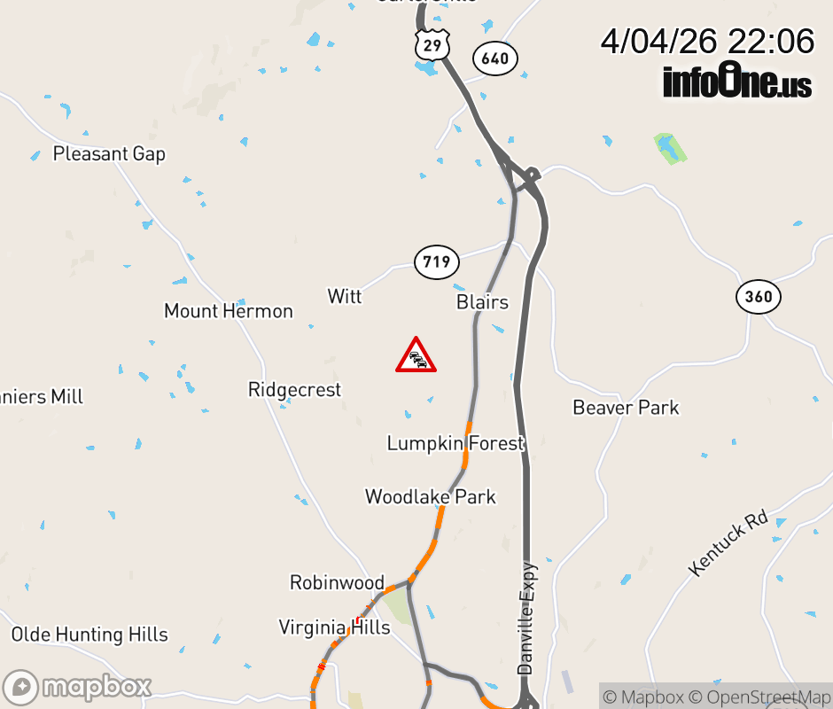 On Rt. 745 in the County of Pittsylvania, in the vicinity of Homeport Ln; Rt. 1127N/S (Pittsylvania County), motorists can expect delays due to weather. All north lanes are closed. All south lanes are closed. Updated: Sat 4/4/26 10:06 PM EDT ![]() Updated: Sat 4/4/26 10:06 PM EDT |