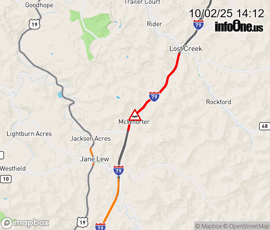Canceled 10/2/25 3:46 PM Location: I-79 at MM 107.0, WV Accident.