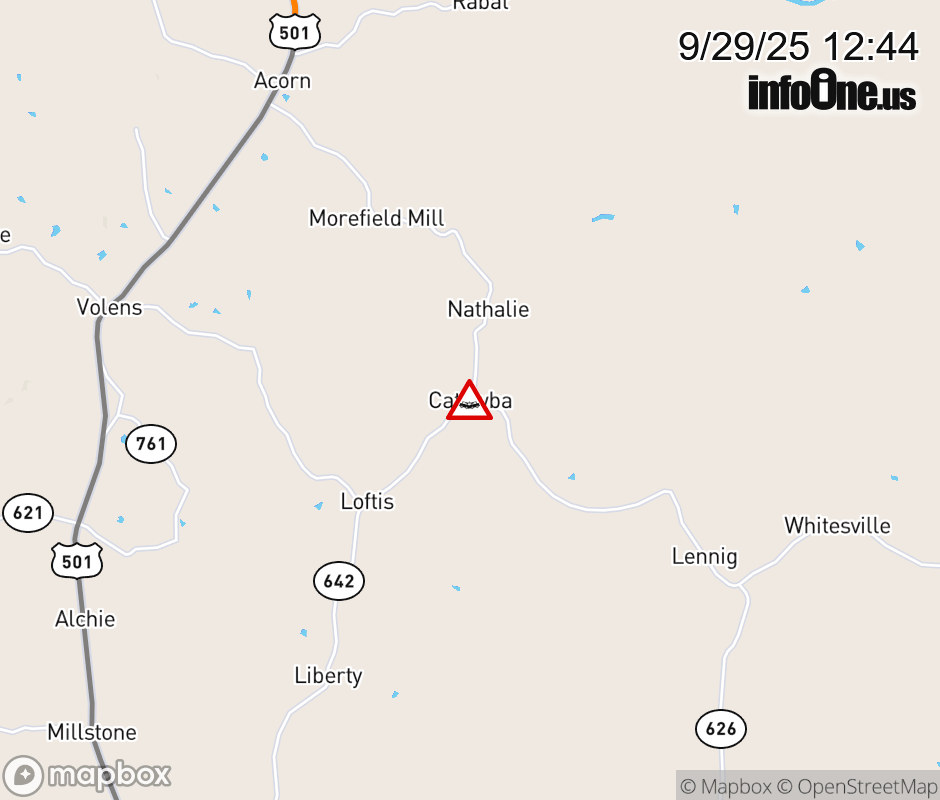 On Rt. 603 East in the County of Halifax, in the vicinity of Nathalie Rd; Rt. 644N/S (Halifax County), motorists can expect delays due to a tractor trailer crash. Lane closures exist. ![]() |
