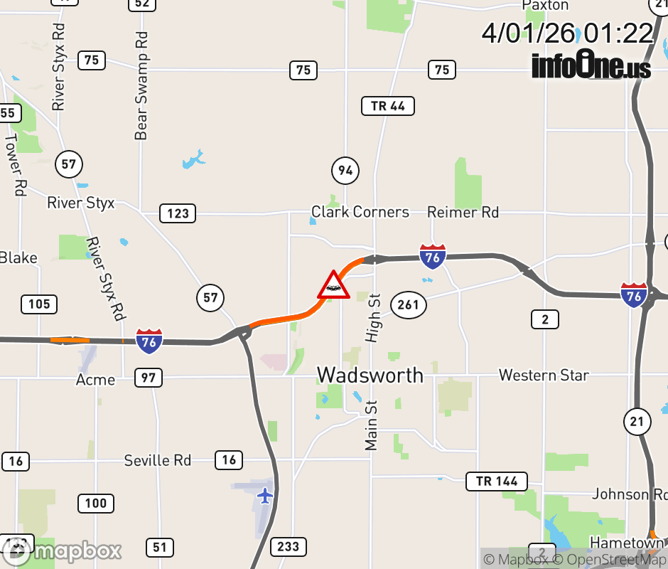 Canceled 4/1/26 2:12 AM Location: I-76/US-224 West at MM 9.2, OH Accident.