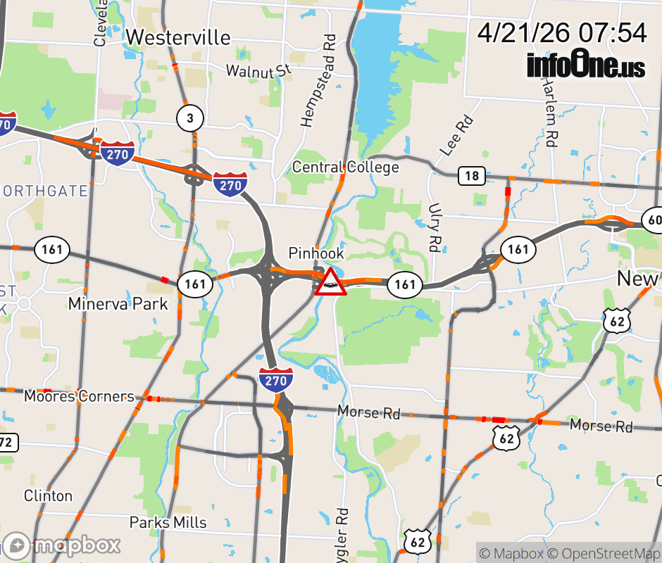 The left shoulder is blocked on SR-161 West at Sunbury Rd, due to a crash. Updated: Tue 4/21/26 7:54 AM EDT ![]() Updated: Tue 4/21/26 7:54 AM EDT |