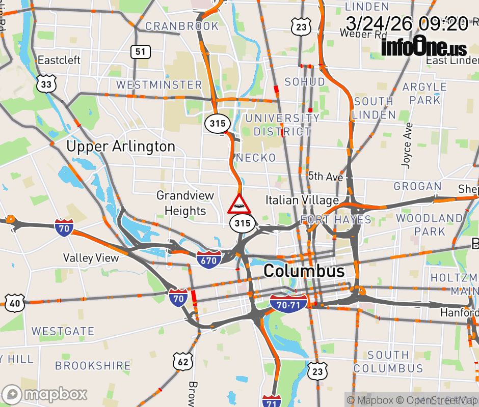 Expect lane closures on Ramp SR-315 South to I-670 East, due to a crash. Updated: Tue 3/24/26 9:20 AM EDT ![]() Updated: Tue 3/24/26 9:20 AM EDT |