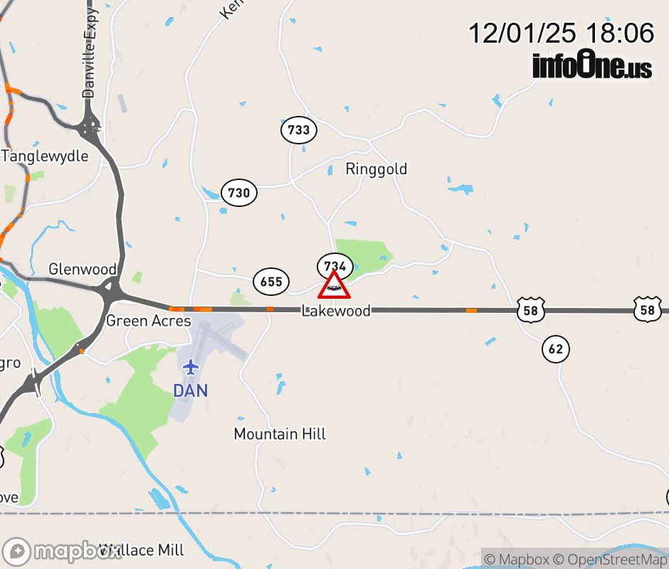 On Rt. 734 North in the County of Pittsylvania, in the vicinity of Tom Fork Rd; Rt. 655E/W (Pittsylvania County), motorists can expect delays due to a multi-vehicle crash. Lane closures exist. ![]() |