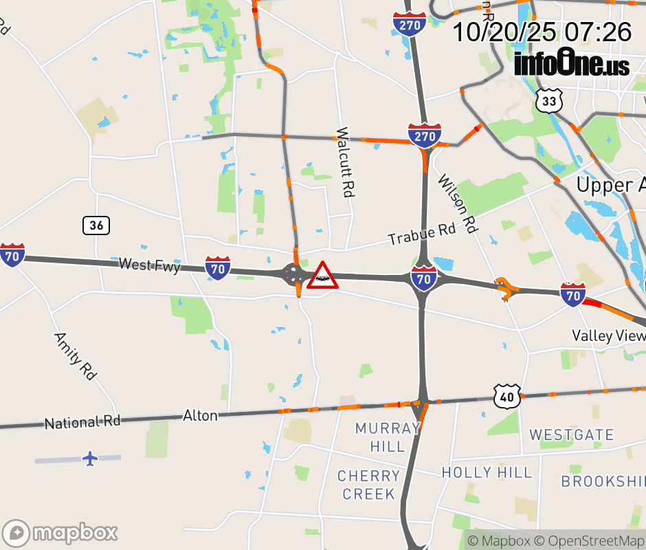 The right shoulder is blocked on I-70 West beyond I-270 (West Side), due to a crash. Updated: Mon 10/20/25 7:26 AM EDT ![]() Updated: Mon 10/20/25 7:26 AM EDT |