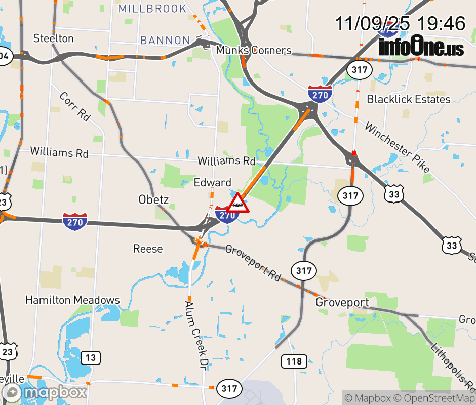 Expect lane closures on I-270 South beyond US-33 East, due to a crash. ![]() |