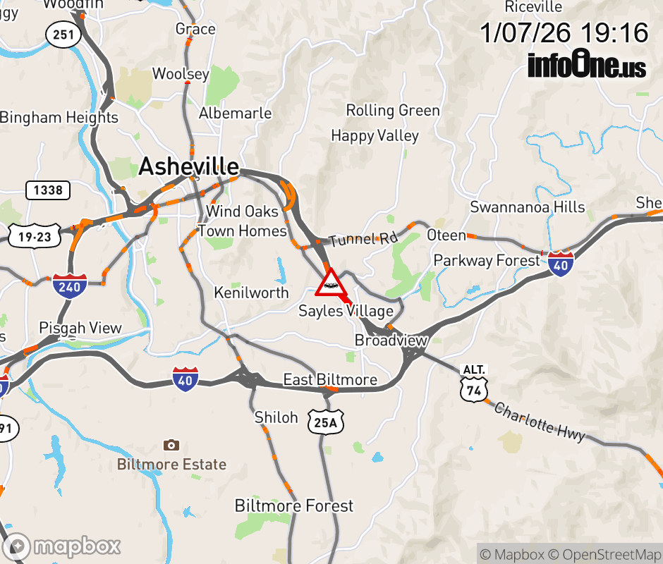 The right lane is closed past Exit 7, US 70 (Tunnel Road) due to a crash. Updated: Wed 1/7/26 7:16 PM EST ![]() Updated: Wed 1/7/26 7:16 PM EST |
