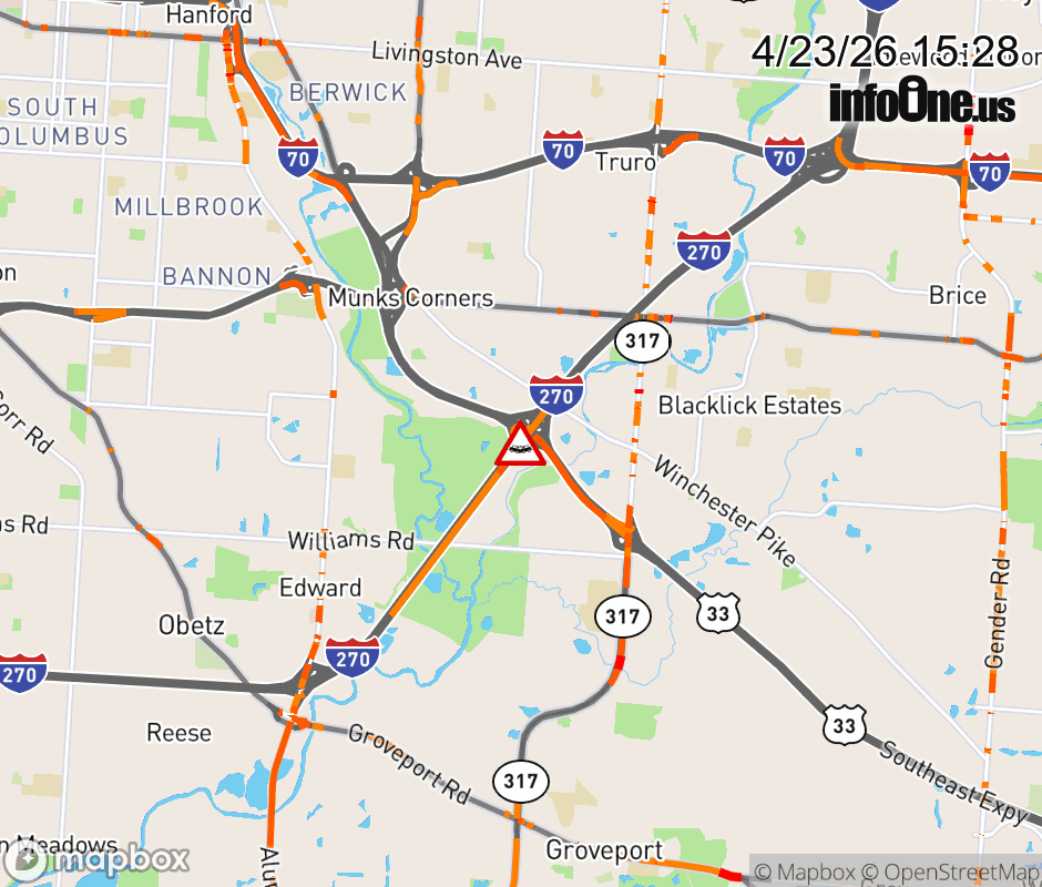 The left shoulder is blocked on I-270 North beyond US-33, due to a crash. ![]() |