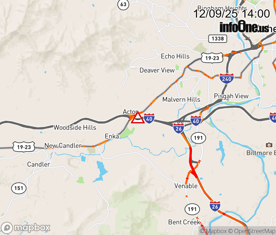 The left lane is closed after Exit 44, US 19/23/74 ALT (Smokey Park Highway). ![]() Updated: Tue 12/9/25 2:00 PM EST |