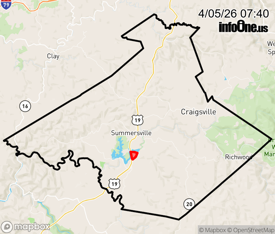 Canceled 4/5/26 8:40 AM Nicholas County has 1 power outage affecting 152 customers. Appalachian Power 152 without power Mount Nebo: Customers affected: 152 (12%) Estimated repair: Sun 3:30 PM Updated: Sun 4/5/26 7:40 AM EDT ![]() |