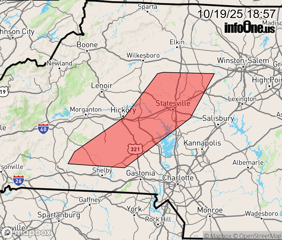 Canceled 10/19/25 7:45 PM Special Weather Statement issued October 19 at 6:56PM EDT by NWS Greenville-Spartanburg SC At 654 PM EDT, Doppler radar was tracking gusty showers along a line extending from 12 miles east of Taylorsville to 4 miles northeast of Newton to 12 miles northwest of Shelby. Movement was east at 30 mph. HAZARD...Wind gusts up to 40 mph. SOURCE...Radar indicated. IMPACT...Gusty winds could knock down tree limbs and blow around unsecured objects. Locations impacted include... Statesville, Newton, Lincolnton, Hickory, Taylorsville, St. Stephens, Conover, Cherryville, Maiden, and Troutman. ![]() |
