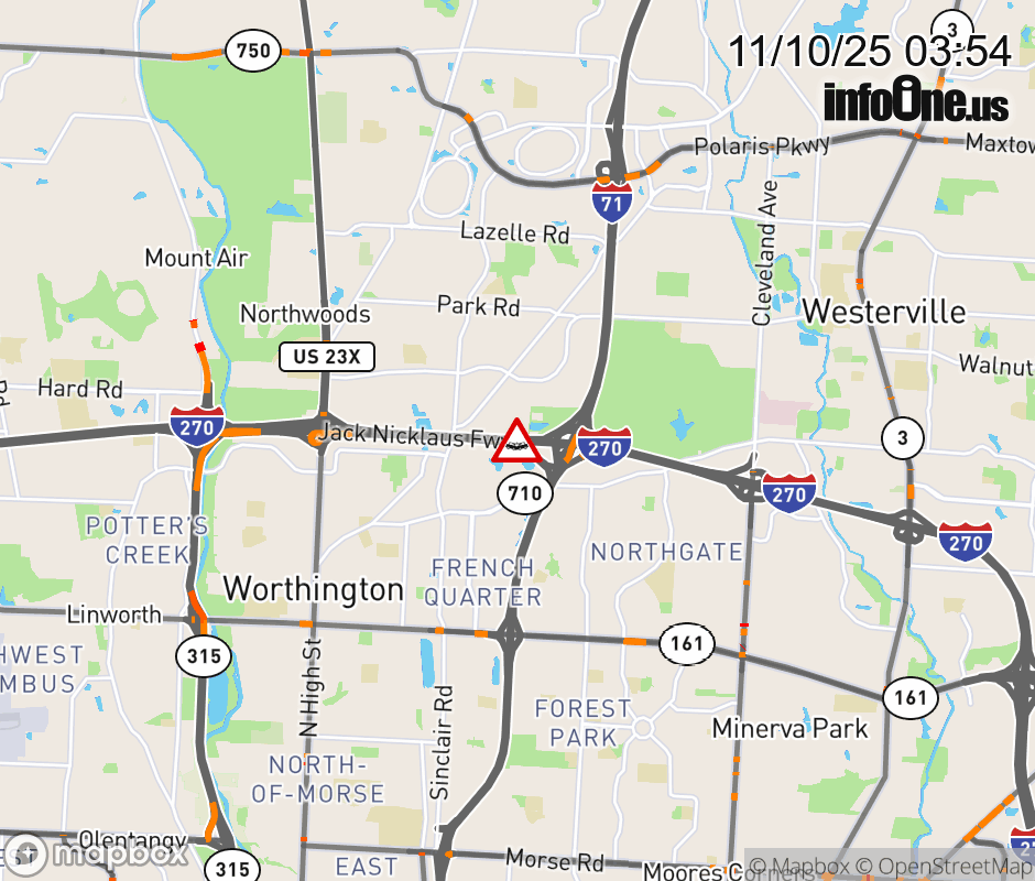 The right shoulder is blocked on I-270 West beyond I-71, due to a crash. Updated: Mon 11/10/25 3:54 AM EST ![]() |