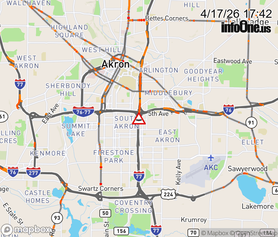 The left shoulder is blocked on Ramp I-77 North to I-76 East, due to a crash. ![]() |