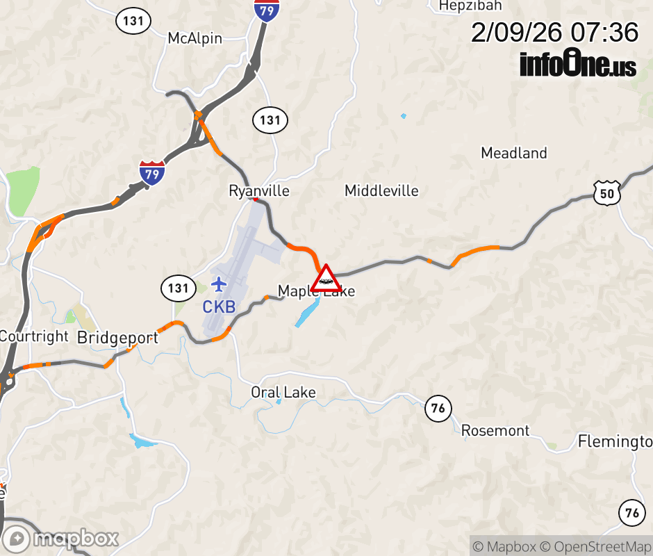 Vehicle Crash on US-50 (Northwestern Tpk) & WV-279 (Jerry Dove Dr) in Bridgeport. ![]() |