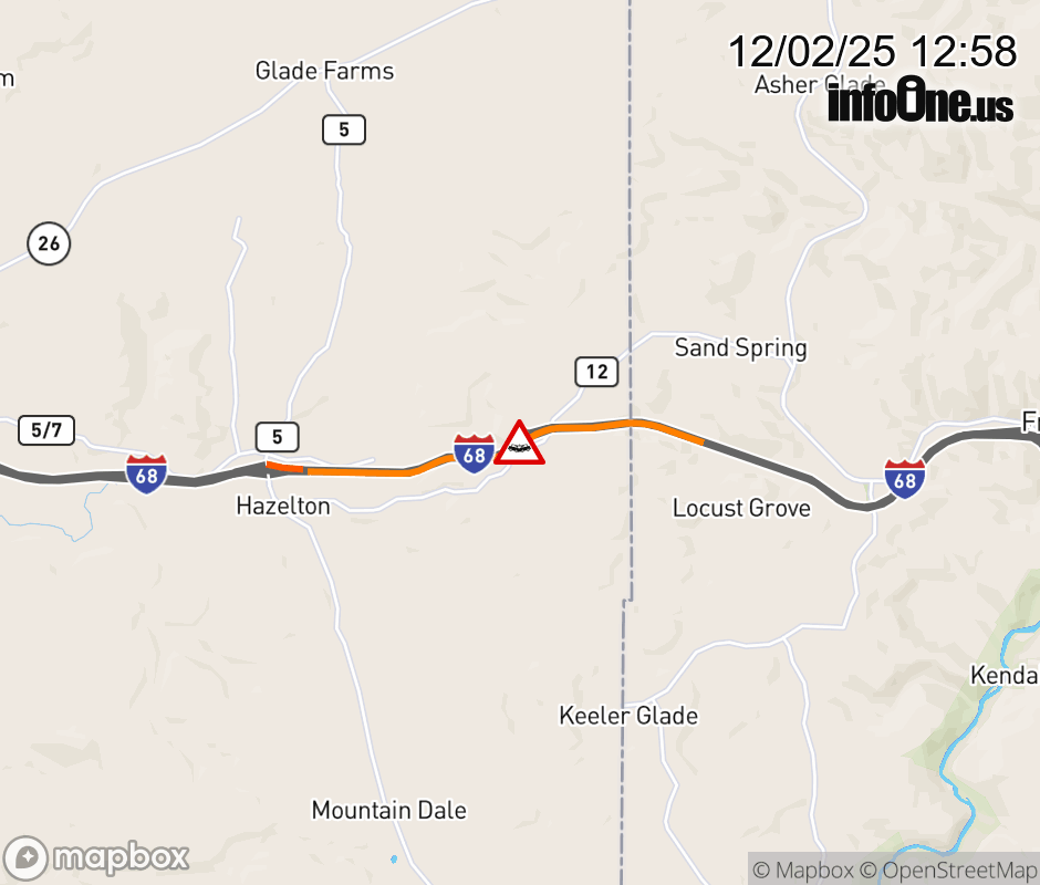 Canceled 12/2/25 3:04 PM Location: I-68 at MM 31.0, WV Accident.