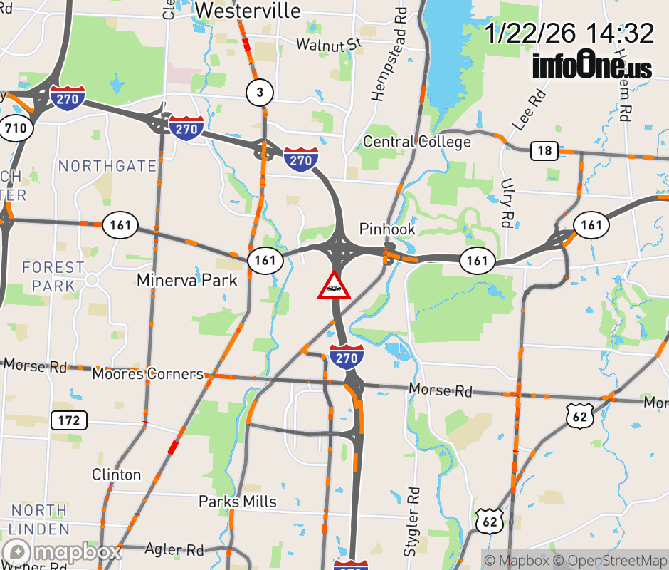 The right shoulder is blocked on I-270 South Collector beyond I-270 South, due to a crash. Updated: Thu 1/22/26 2:32 PM EST ![]() Updated: Thu 1/22/26 2:32 PM EST |