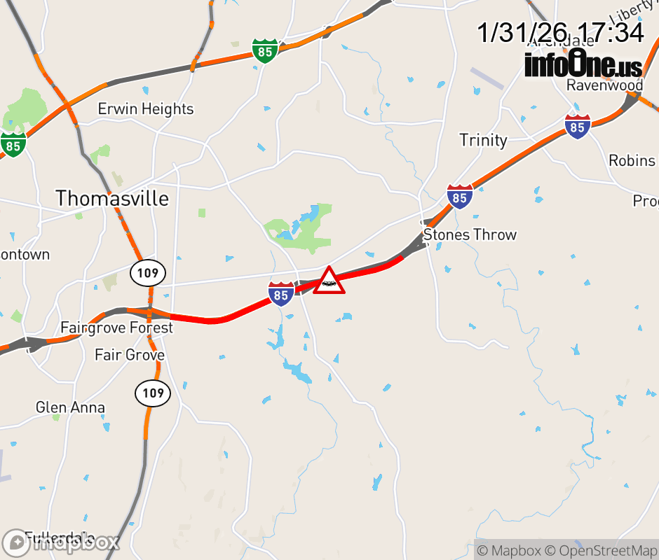Canceled 1/31/26 5:42 PM Location: I-85N at MM 106, NC Vehicle Crash.