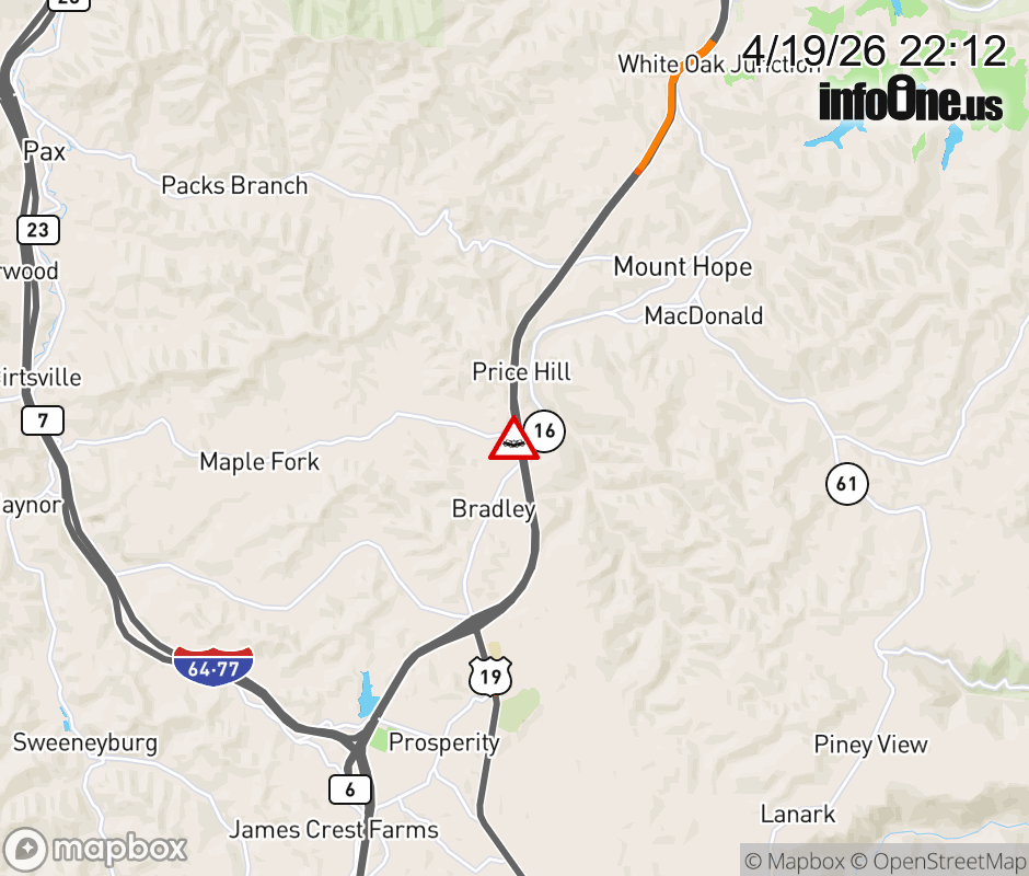 Vehicle Crash on US-19/Maple Fork Rd. Updated: Sun 4/19/26 10:12 PM EDT ![]() Updated: Sun 4/19/26 10:12 PM EDT |