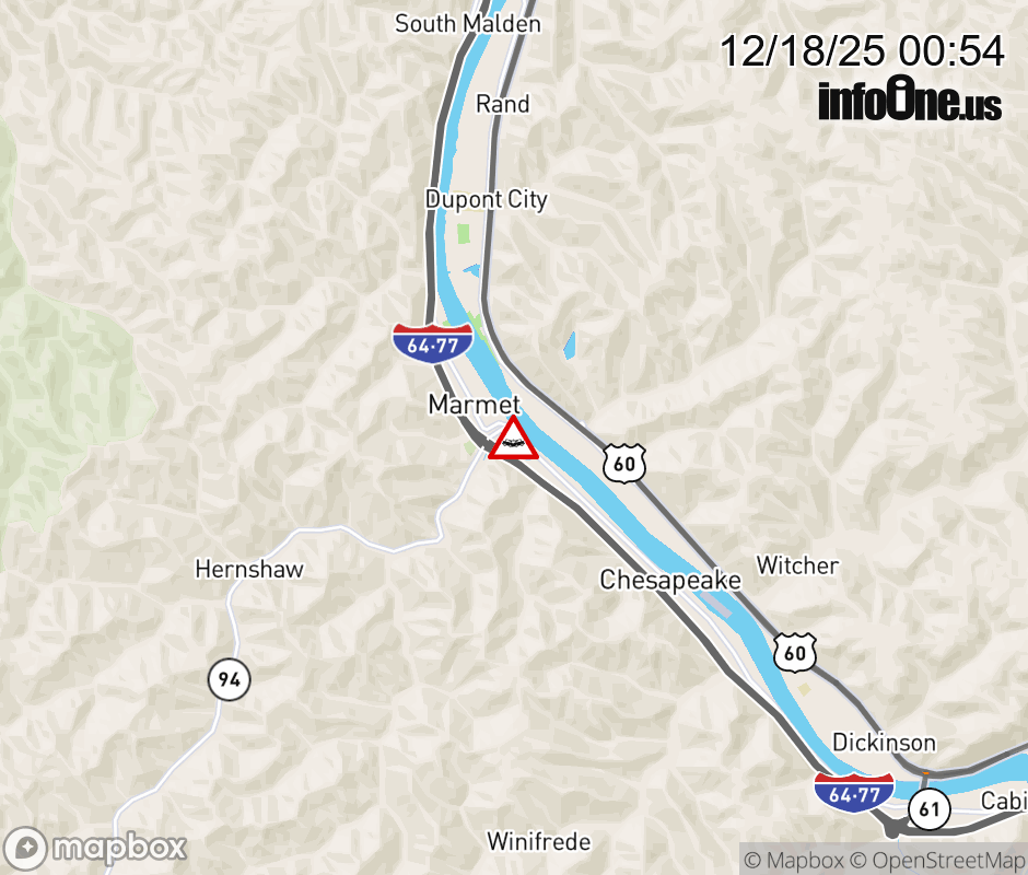 Vehicle Crash on WV-61 (10410 MacCorkle Ave SE, Marmet). ![]() |