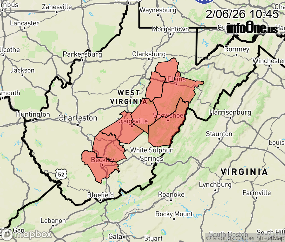 Winter Storm Warning issued February 6 at 10:44AM EST until February 7 at 7:00AM EST by NWS Charleston WV * WHAT... Heavy snow. Additional snow accumulations between 5 and 10 inches. Winds gusting as high as 55 mph. * WHERE... Portions of northeast, northern, and southeast West Virginia. * WHEN... Until 7 AM EST Saturday. * IMPACTS... The strong winds and weight of snow on tree limbs may down power lines and could cause sporadic power outages. Travel could be very difficult. The hazardous conditions could impact the Friday evening commute. Strong winds could cause tree damage. ![]() |