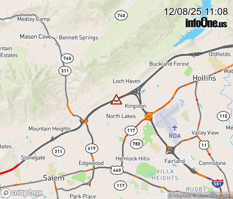 On I-81 at mile marker 143 in the County of Roanoke, motorists can expect delays due to a vehicle crash. The north right lane and right shoulder are closed. Updated: Mon 12/8/25 11:08 AM EST ![]() |