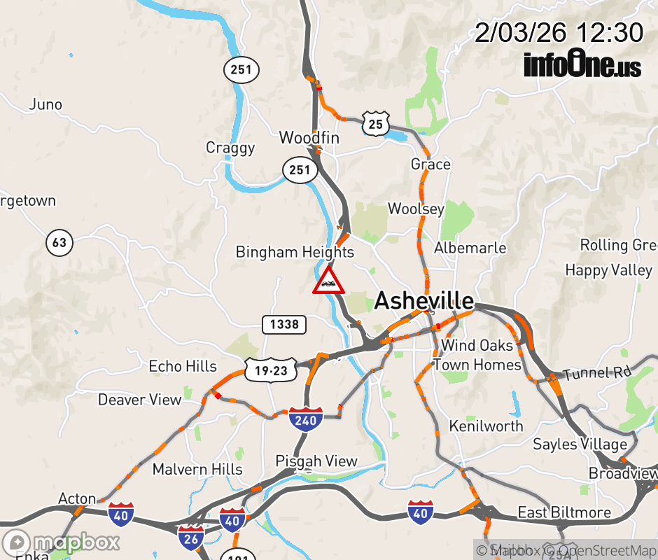 The right lane is closed near Exit 25, NC 251 (Riverside Drive). ![]() |