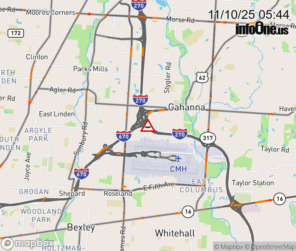 Canceled 11/10/25 6:14 AM Location: Ramp I-270 North to I-670/US-62 West N, OH Accident.
