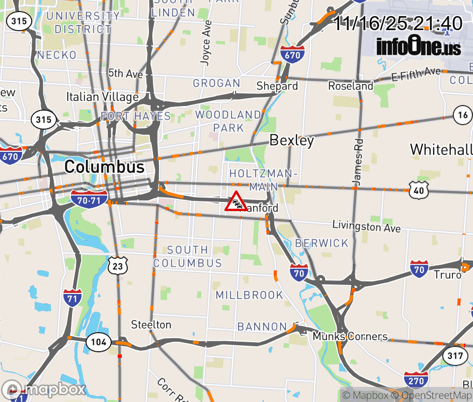 The right lane is blocked on I-70 East beyond Miller Ave/Kelton Ave, due to repairs/maintenance. Updated: Sun 11/16/25 9:40 PM EST ![]() Updated: Sun 11/16/25 9:40 PM EST |