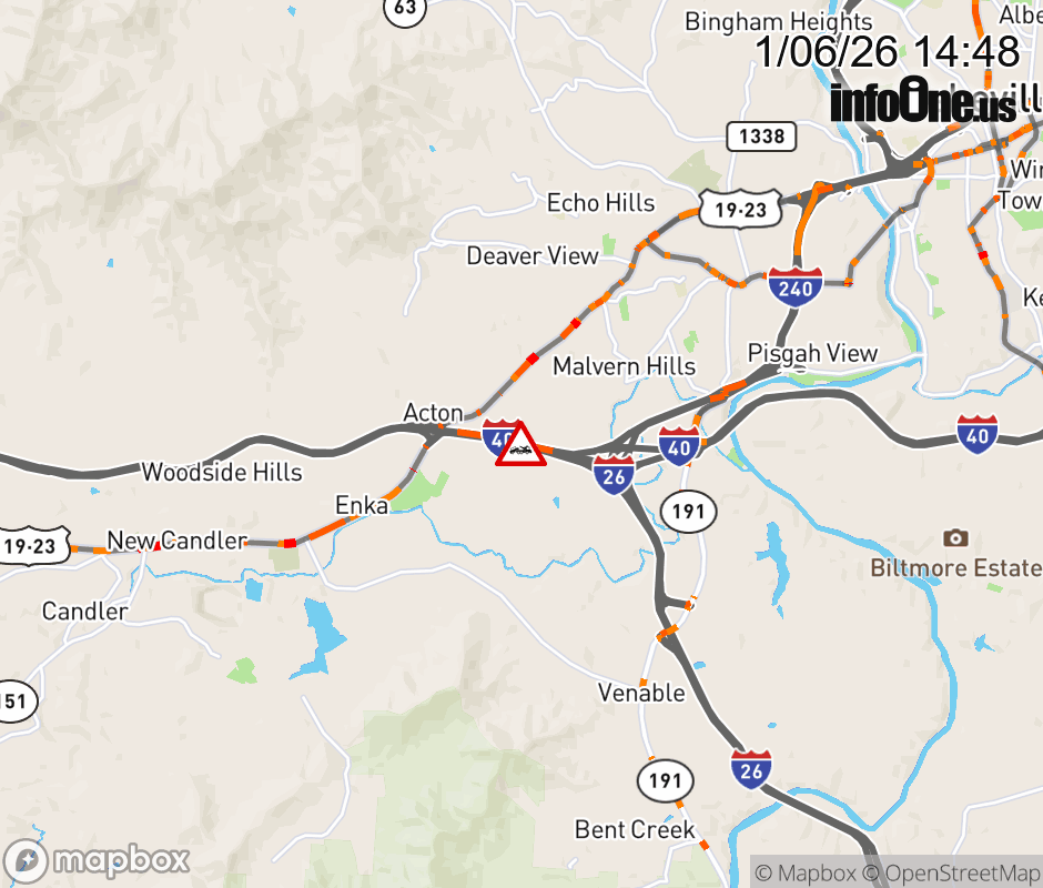The right lane is closed half mile before Exit 44, US 19 (Smokey Park Highway). ![]() |