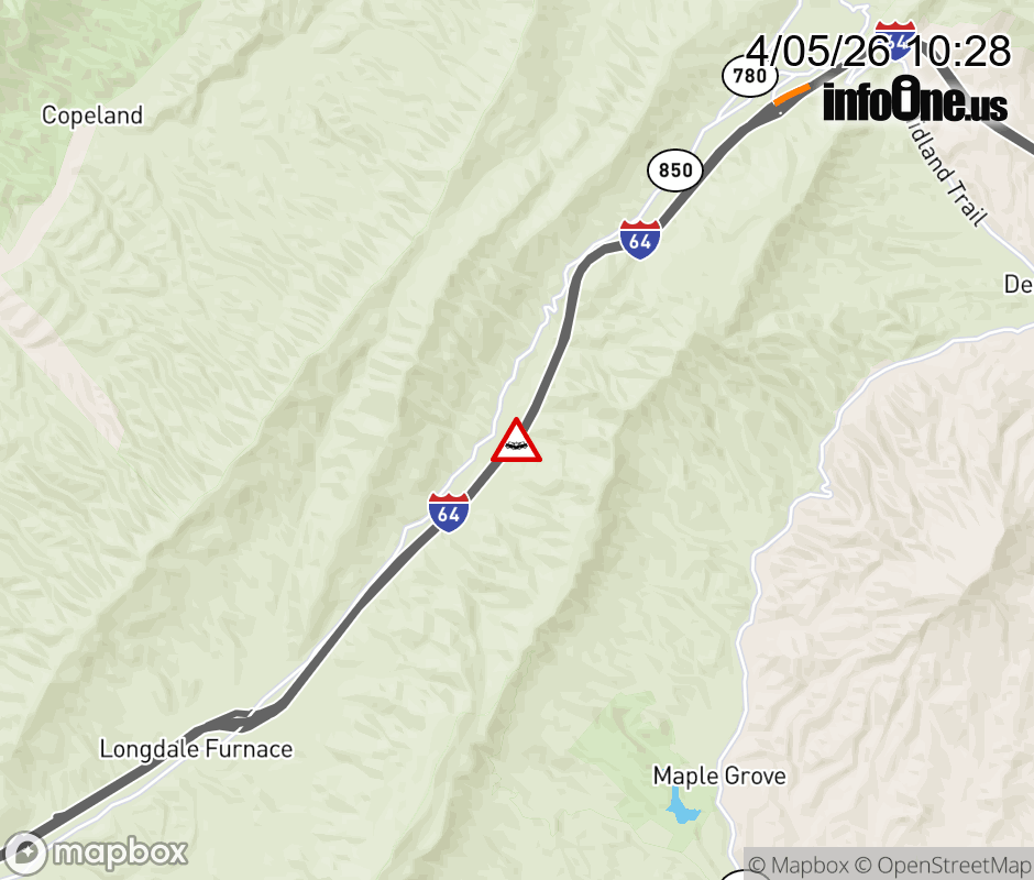 On I-64 East at mile marker 39.4 in the County of Alleghany, motorists can expect delays due to a vehicle crash. Updated: Sun 4/5/26 10:28 AM EDT ![]() Updated: Sun 4/5/26 10:28 AM EDT |