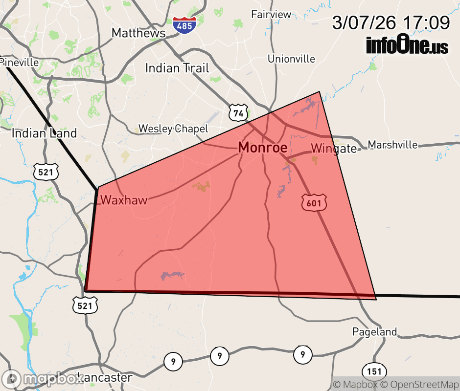 Canceled 3/7/26 5:45 PM Special Weather Statement issued March 7 at 5:08PM EST by NWS Greenville-Spartanburg SC At 508 PM EST, Doppler radar was tracking a strong thunderstorm 8 miles north of Lancaster, or near Andrew Jackson State Park, moving east at 25 mph. HAZARD...Wind gusts up to 40 mph and pea size hail. SOURCE...Radar indicated. IMPACT...Gusty winds could knock down tree limbs and blow around unsecured objects. Minor hail damage to outdoor objects is possible. Locations impacted include... Monroe, Wingate, Waxhaw, Mineral Springs, Jaars, and Trinity. ![]() |