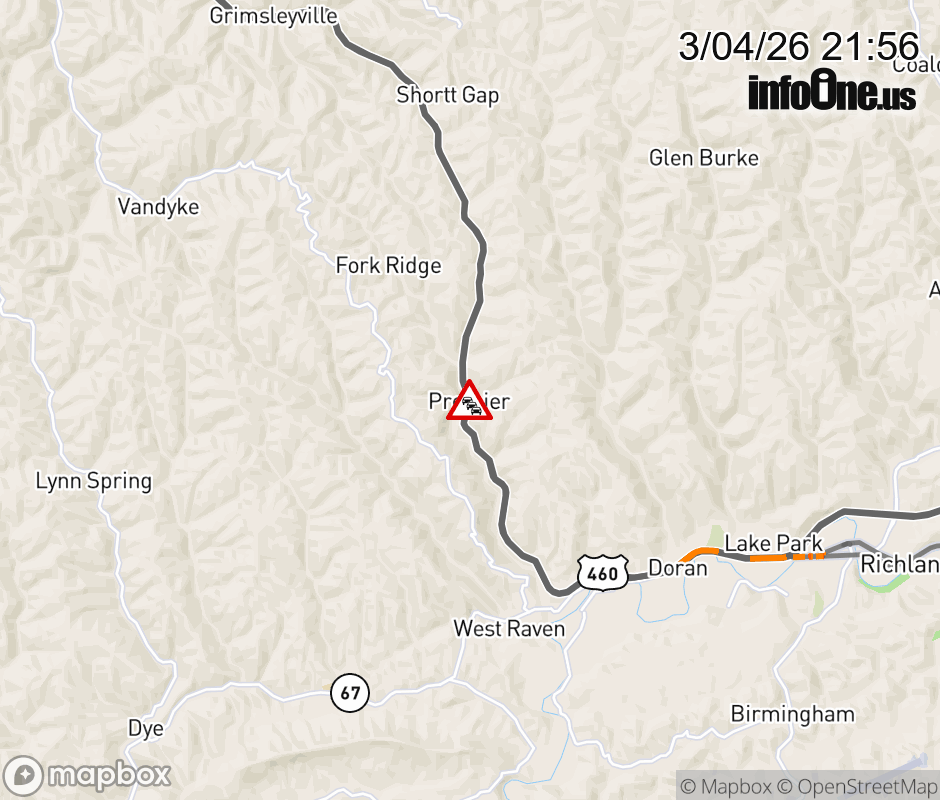 On Rt. 804 in the County of Tazewell, in the vicinity of Premier Rd; Rt. 669E/W (Tazewell County), motorists can expect delays due to weather. All north lanes are closed. All south lanes are closed. Updated: Wed 3/4/26 9:56 PM EST ![]() Updated: Wed 3/4/26 9:56 PM EST |