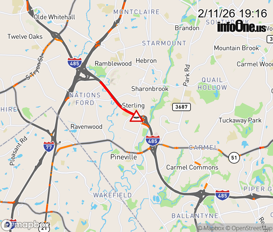 The road is closed at Exit 65B(South Boulevard). Updated: Wed 2/11/26 7:16 PM EST ![]() Updated: Wed 2/11/26 7:16 PM EST |