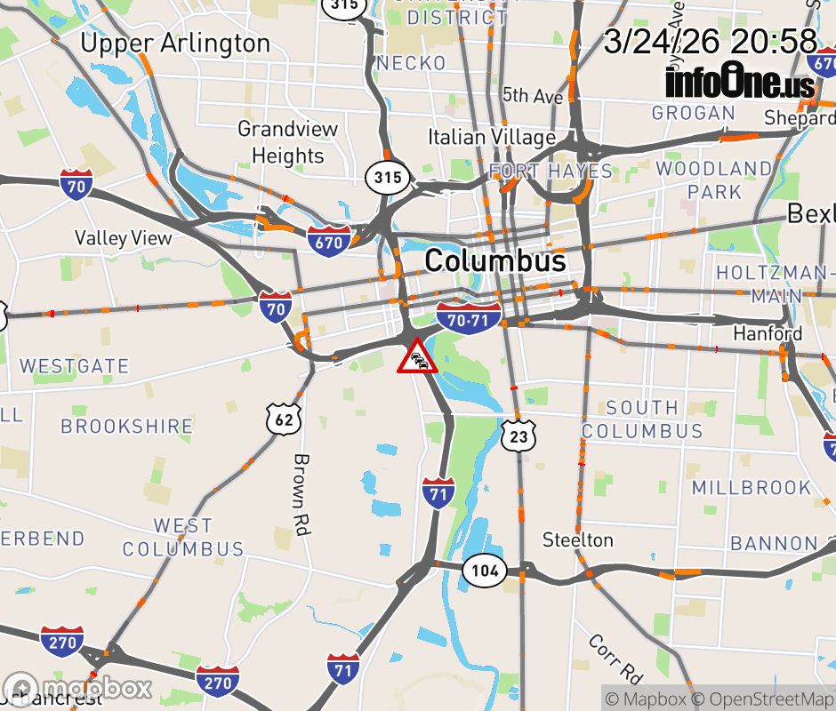 All lanes are closed on SR-315 North at Ramp I-71 North to I-70 West, due to repairs/maintenance. ![]() |
