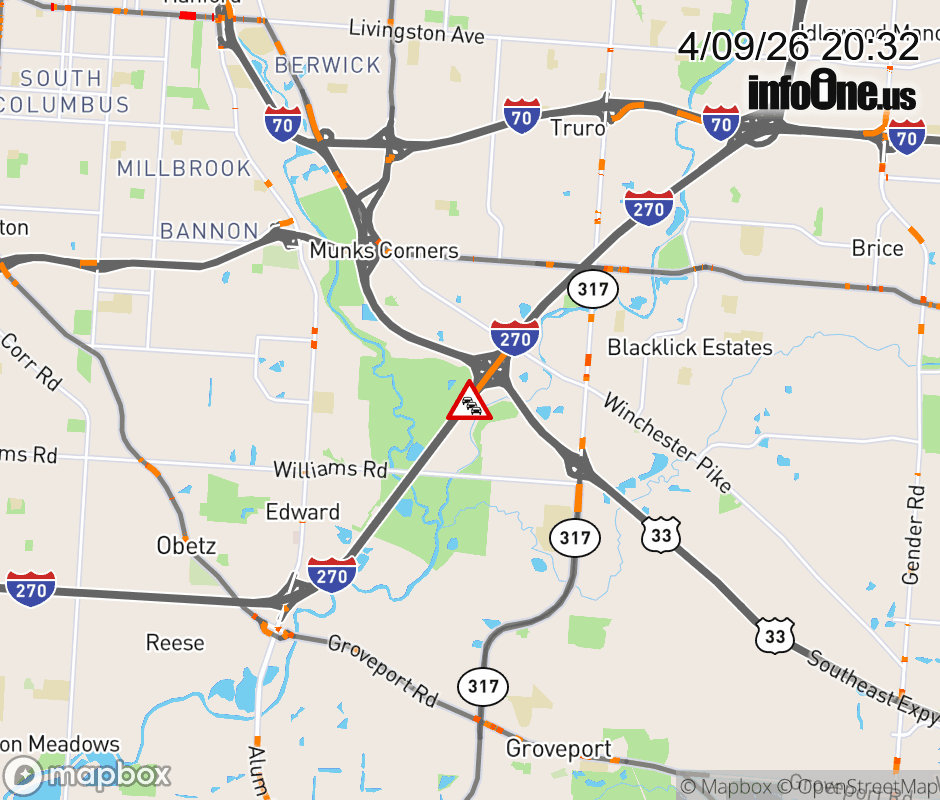 The left lane is blocked on I-270 North at US-33, due to repairs/maintenance. ![]() |