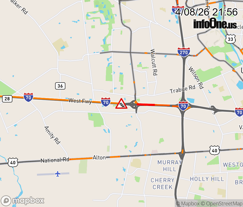 The 2 right lanes are blocked on I-70 West beyond Hilliard-Rome Rd South, due to repairs/maintenance. Updated: Wed 4/8/26 9:56 PM EDT ![]() Updated: Wed 4/8/26 9:56 PM EDT |