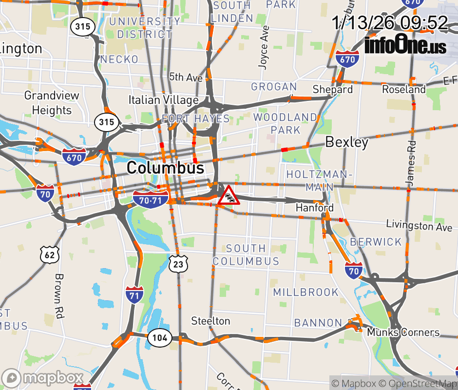 Expect lane closures on I-70 West at I-71 North/US-40 Broad St, due to debris on roadway. Updated: Tue 1/13/26 9:52 AM EST ![]() Updated: Tue 1/13/26 9:52 AM EST |