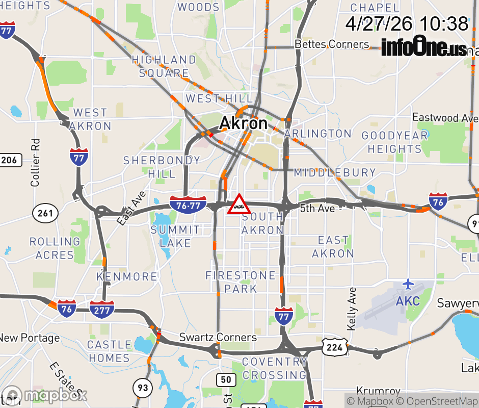 The right shoulder is blocked on I-76 East/I-77 South beyond Main St/Downtown, due to a disabled vehicle. ![]() |