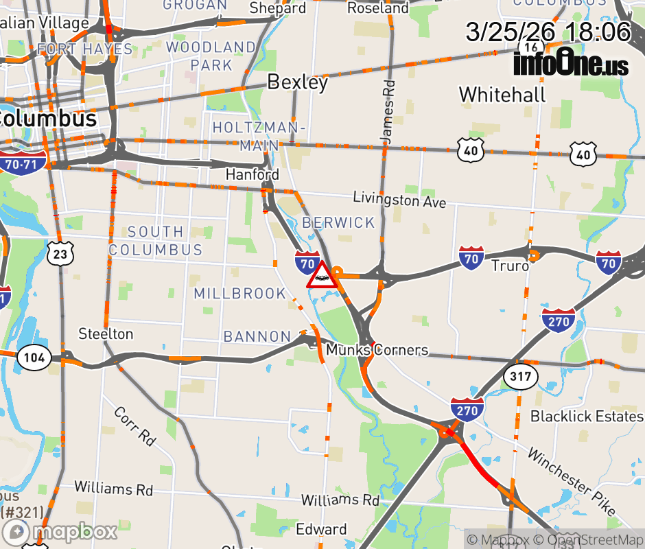 The right shoulder is blocked on I-70 West beyond US-33, due to a crash. Updated: Wed 3/25/26 6:06 PM EDT ![]() Updated: Wed 3/25/26 6:06 PM EDT |