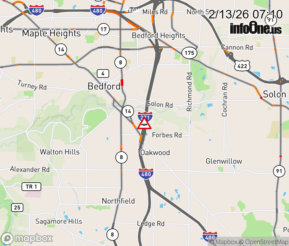 Ramp to SR-14/Forbes Rd/Broadway Ave from I-271/I-480 South is blocked due to crash. ![]() |