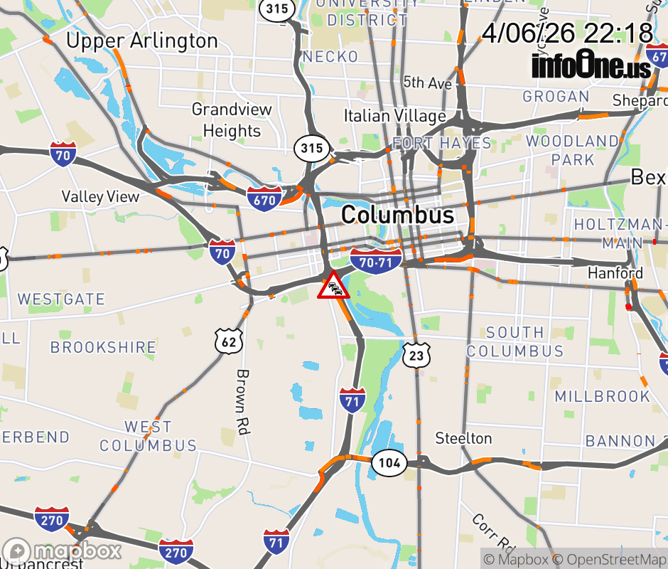 All lanes are closed on SR-315 North at Ramp I-71 North to I-70 West, due to repairs/maintenance. ![]() |