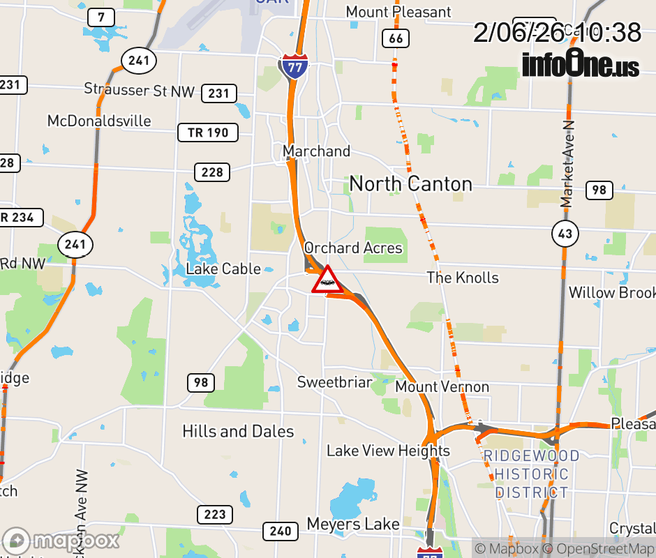 The right lane is blocked on I-77 North beyond Everhard Rd (East), due to a crash. Updated: Fri 2/6/26 10:38 AM EST ![]() Updated: Fri 2/6/26 10:38 AM EST |