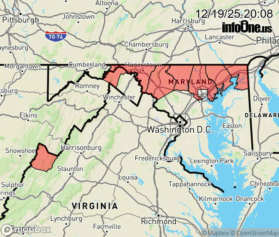 Canceled 12/19/25 9:42 PM Wind Advisory issued December 19 at 8:07PM EST until December 19 at 10:00PM EST by NWS Baltimore MD/Washington DC * WHAT... West winds 20 to 25 mph with gusts up to 50 mph. * WHERE... Portions of north central, northeast, northern, and western Maryland, western Virginia, and panhandle West Virginia. * WHEN... Until 10 PM EST this evening. * IMPACTS... Gusty winds will blow around unsecured objects. Tree limbs could be blown down and a few power outages may result. ![]() |