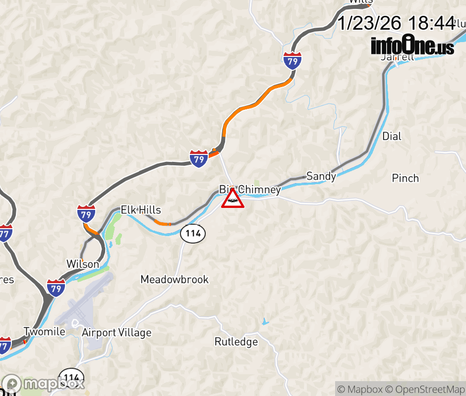 Vehicle Crash on CR-49 (Indian Creek Rd) & WV-114 (Big Chimney Blvd) in Big Chimney. Updated: Fri 1/23/26 6:44 PM EST ![]() Updated: Fri 1/23/26 6:44 PM EST |