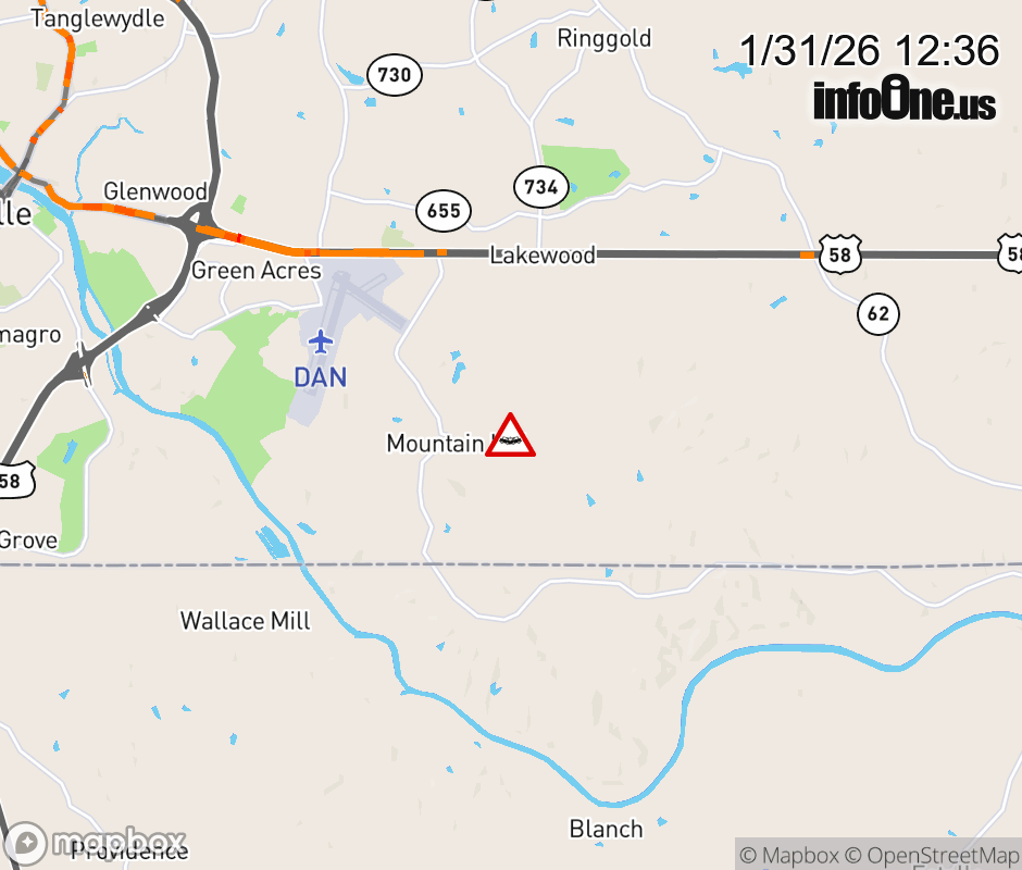 On Rt. 735 East in the County of Pittsylvania, in the vicinity of Evangel Dr; Rt. 1246N/S (Pittsylvania County), motorists can expect delays due to a vehicle crash. Lane closures exist. Updated: Sat 1/31/26 12:36 PM EST ![]() Updated: Sat 1/31/26 12:36 PM EST |