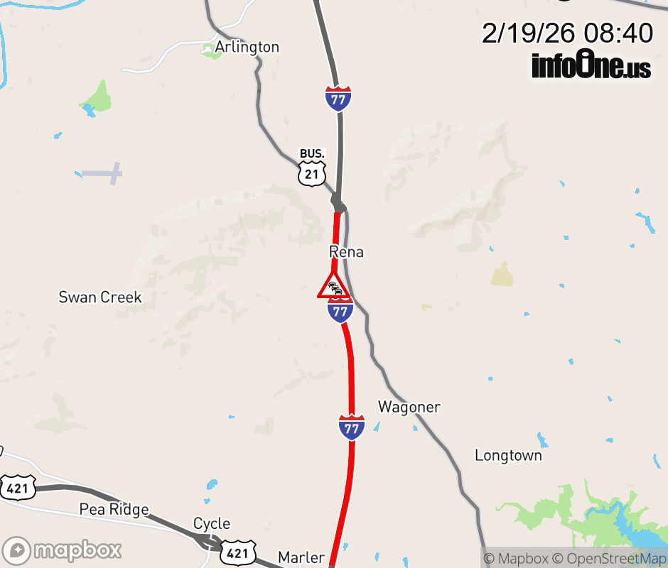 The right lane is closed past Exit 79 (US 21). Updated: Thu 2/19/26 8:40 AM EST ![]() Updated: Thu 2/19/26 8:40 AM EST |